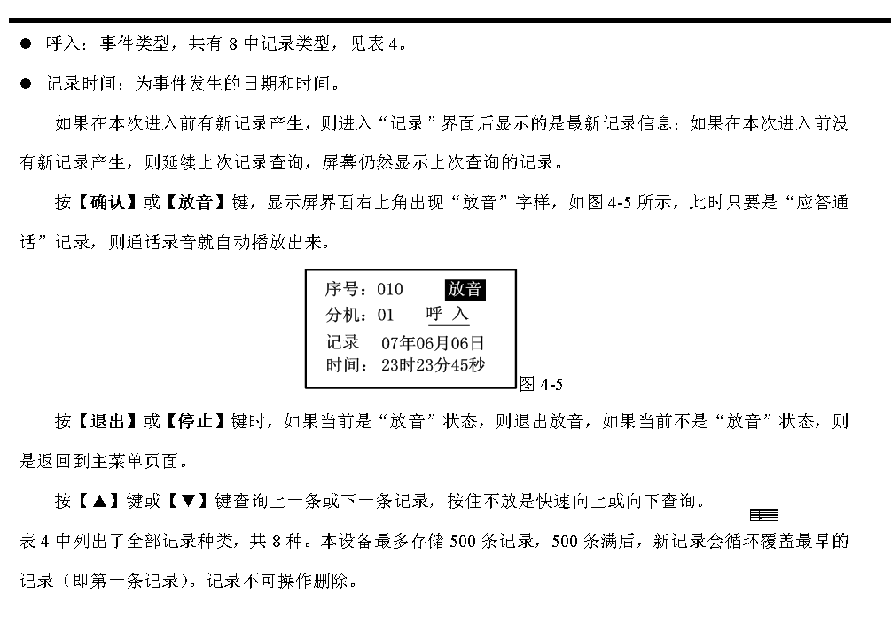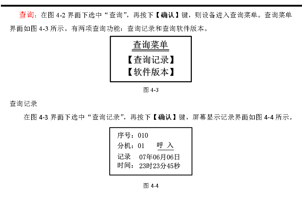 在圖3-16所示的呼叫通話顯示界面上,每種狀態的分機可能不止1個,本設備采用自動循環顯示方式,自動循環顯示大約是每1.5秒顯示一個。在自動循環顯示的同時也可手動插入查詢循環顯示的分機號。按【▲】鍵或【▼】鍵分別是向前或向后逐個查詢,每按一下向前或向后顯示一個,如果停止操作10秒鐘,那么又重新回到自動循環顯示方式。