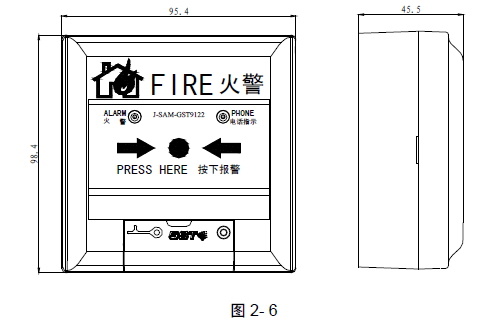 三、海灣J-SAM-GST9122 手動火災報警按鈕外形示意圖如圖2- 6