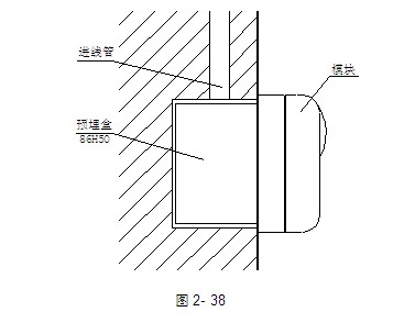 本編址接口模塊采用明裝,當進線管預埋時,可將底盒安裝在86H50型預埋盒上,安裝方法如圖2-38;當進線管明裝時,采用B-9310型后備盒安裝方式,具體使用方法見第二章3.6節的B-9310。底盒與上蓋間采用拔插式結構安裝,拆卸簡單方便,便于調試維修。