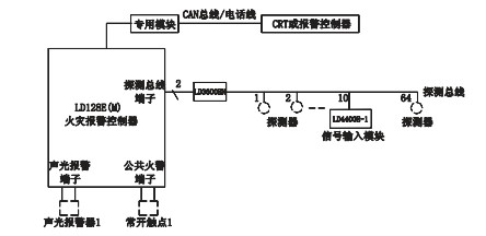 六、利達(dá)區(qū)域火災(zāi)報(bào)警控制器 JB-QB/LD128E(M)-64系統(tǒng)框圖